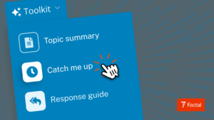 Each tool is grounded in Factal’s verified data – not speculative social media chatter – delivering the highest-quality responses on the market. For example, “Catch me up” is a productivity tool that makes it easy to get caught up on any topic, and the “Topic summary” tool generates custom reports on the fly.